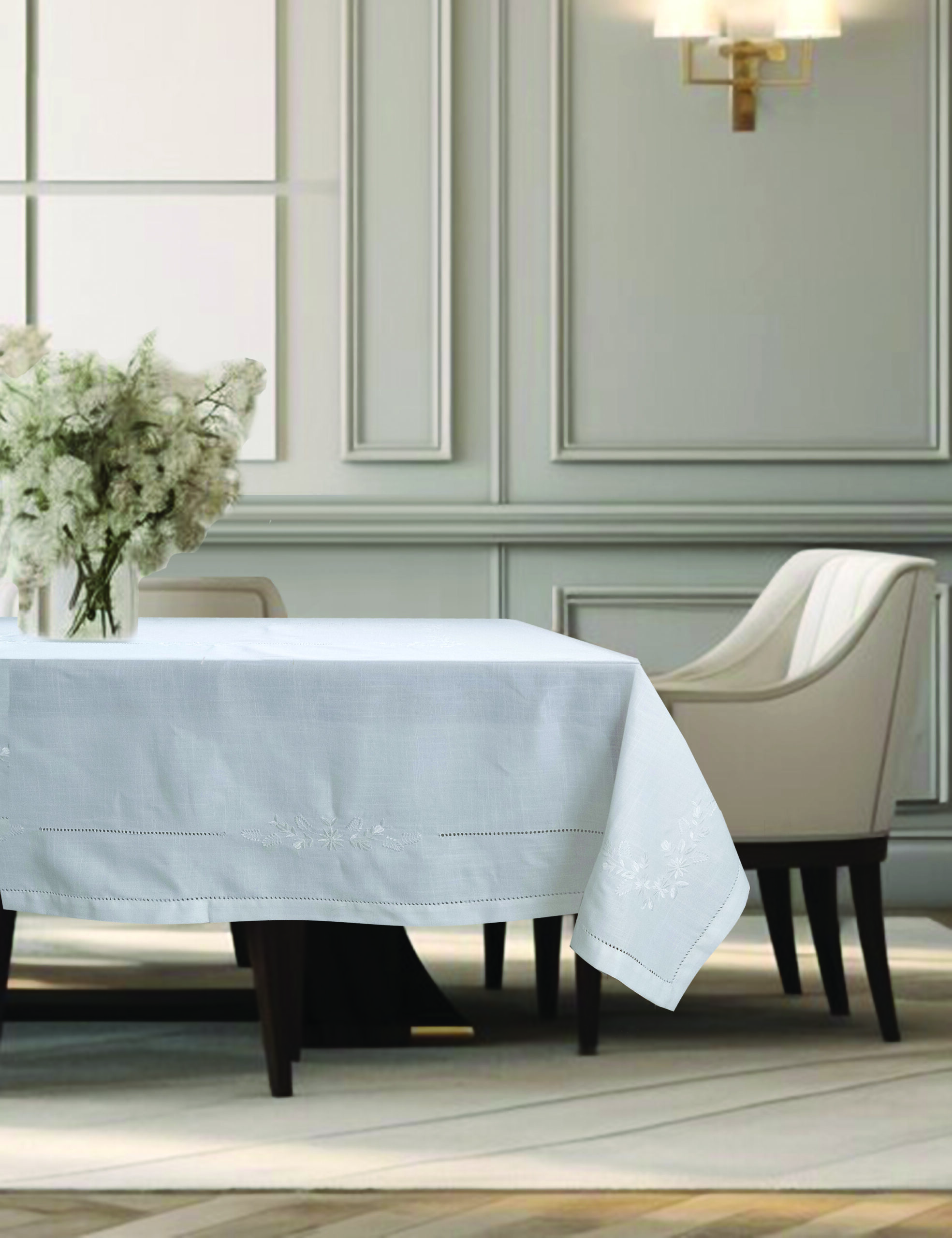 Λευκό κεντητό τραπεζομάντηλο & ροτόντα off-white.